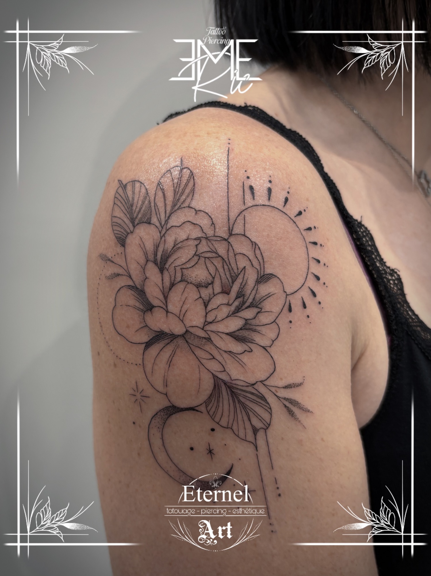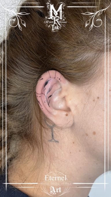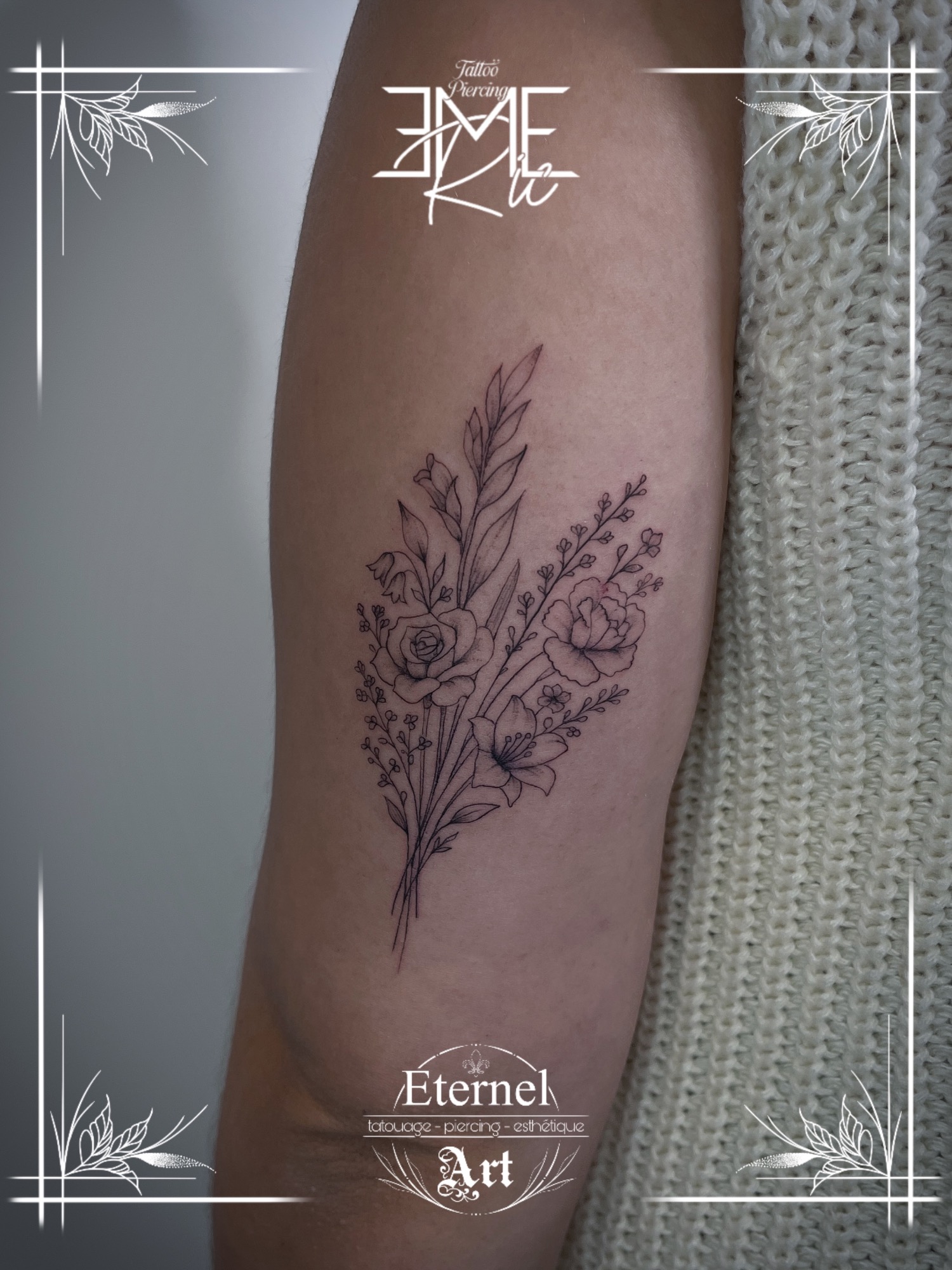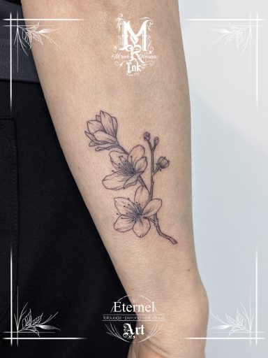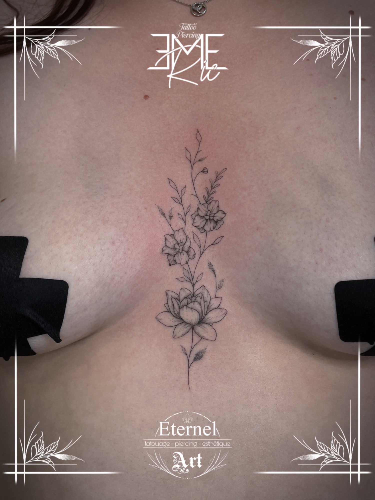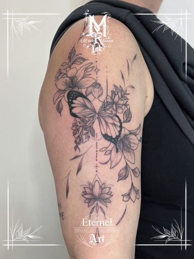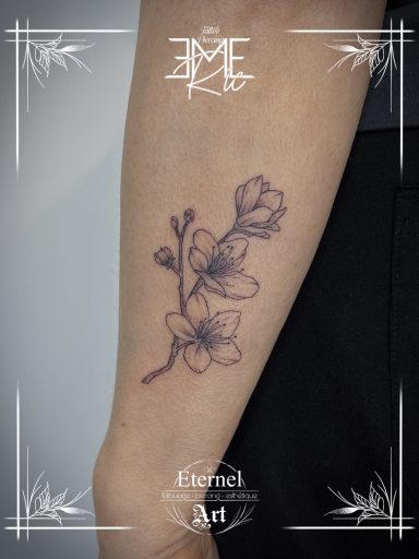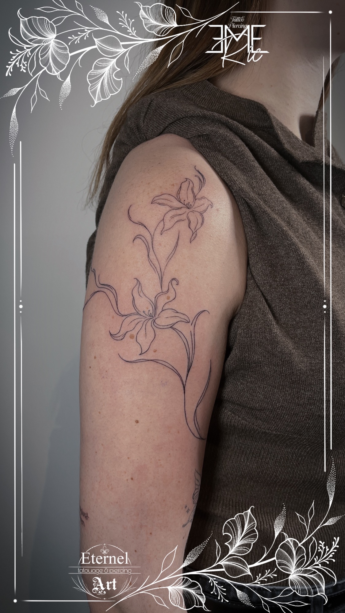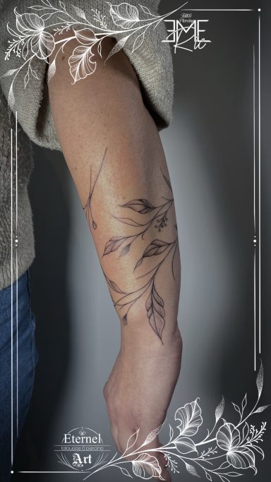 Les tatouages réalisés par Emeric ont pour points communs les lignes fines dit « fineline ». Il remporte la 2e place à la convention « INTERNATIONAL CHARTRES TATTOO SHOW 2025 » dans cette catégorie. La finesse, la précision et la délicatesse sont ses maîtres mots. Des ombrages claires et léger viennent sublimer les tattoos.