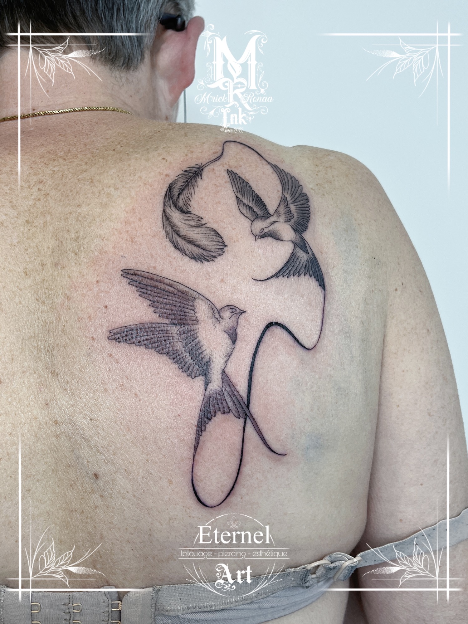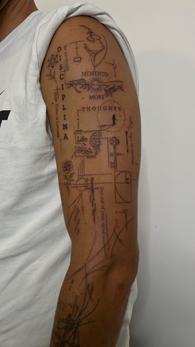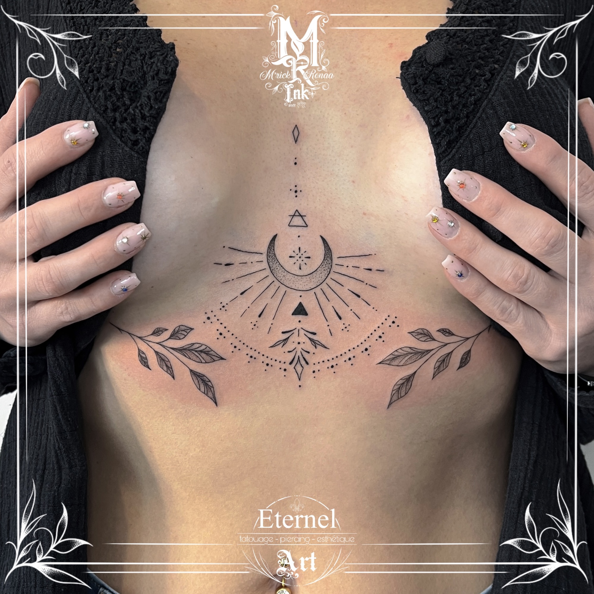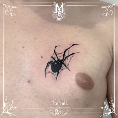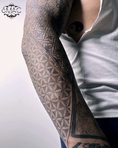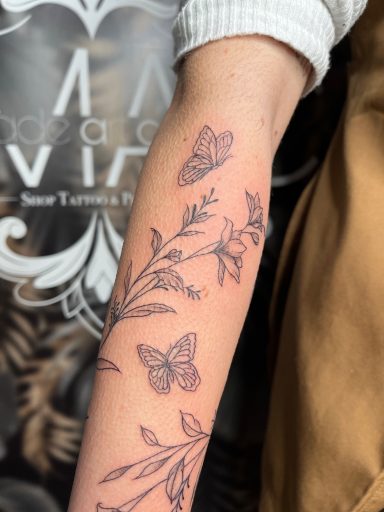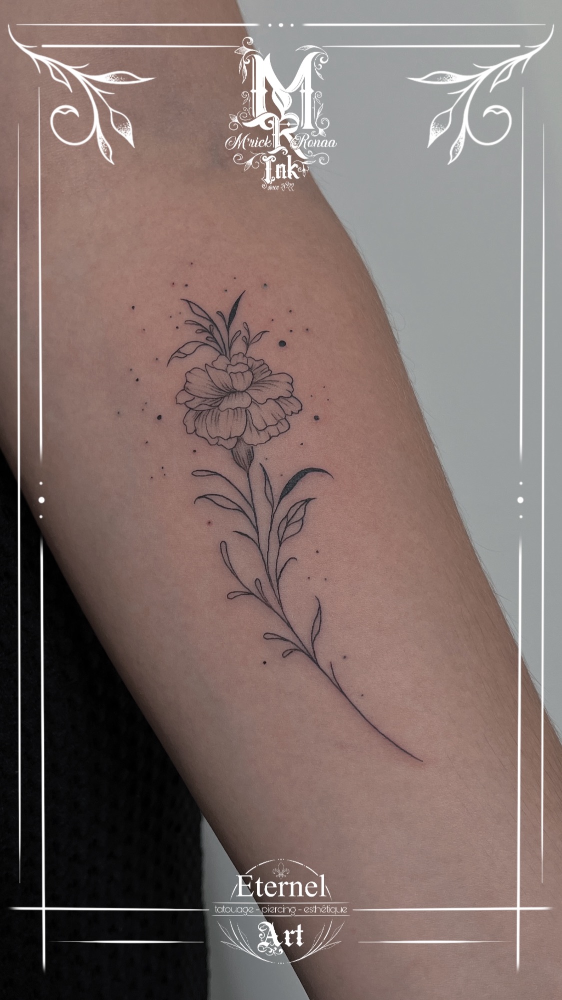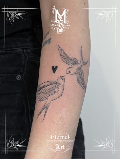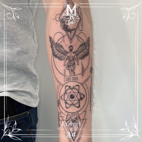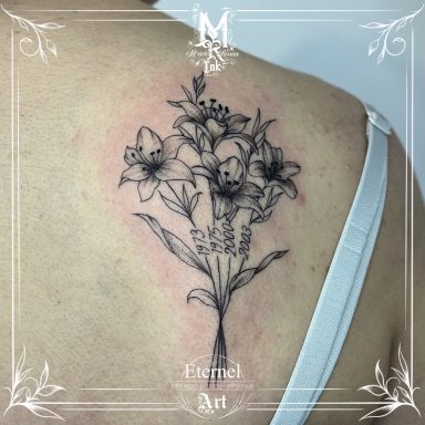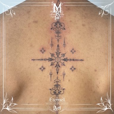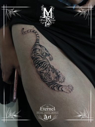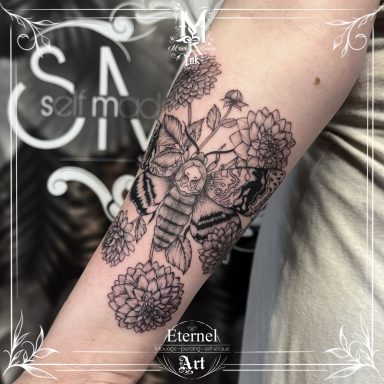 Les tatouages réalisés par Emeric ont pour points communs les lignes fines dit « fineline ». Il remporte la 2e place à la convention « INTERNATIONAL CHARTRES TATTOO SHOW 2025 » dans cette catégorie. La finesse, la précision et la délicatesse sont ses maîtres mots. Des ombrages claires et léger viennent sublimer les tattoos.