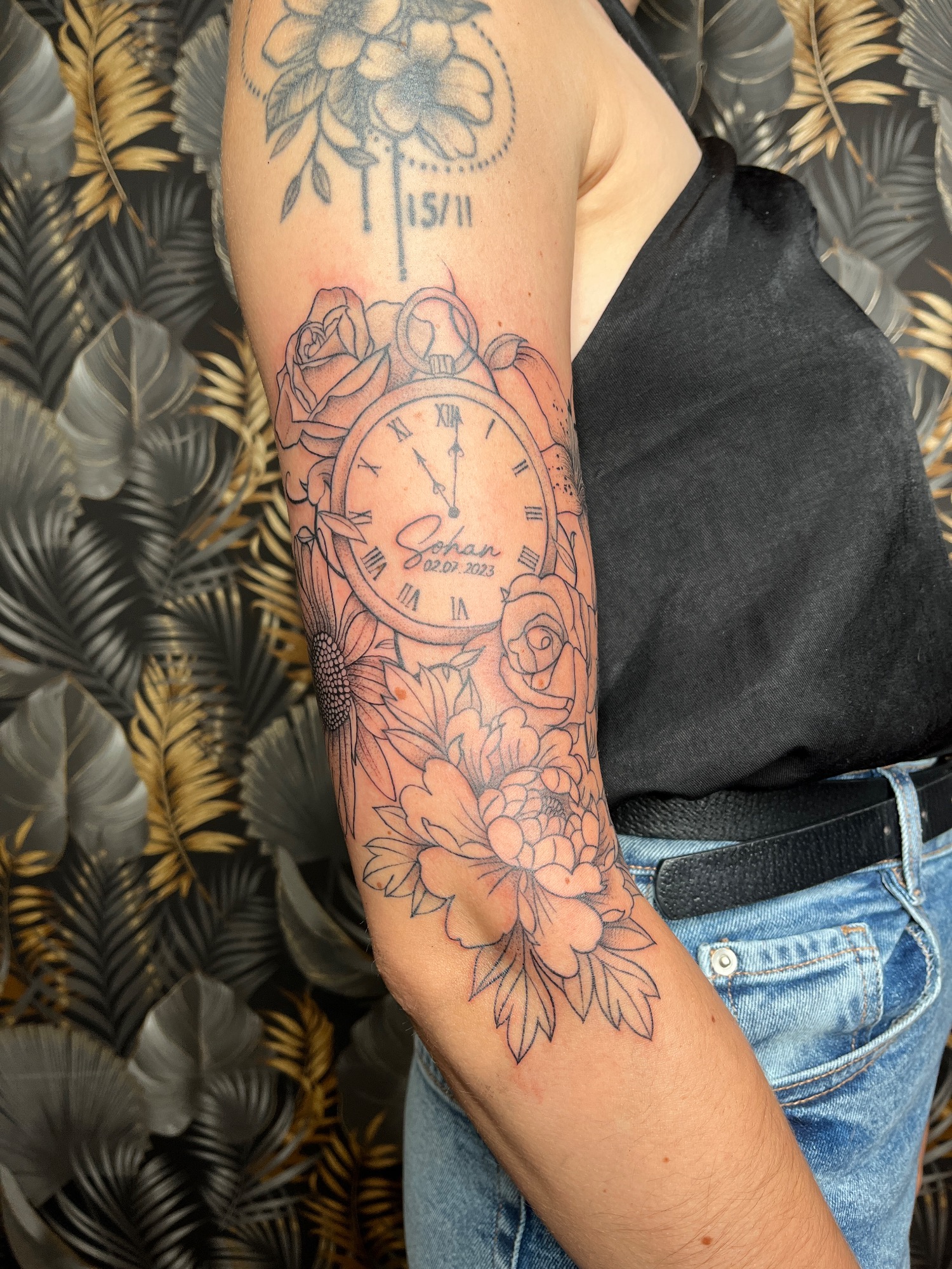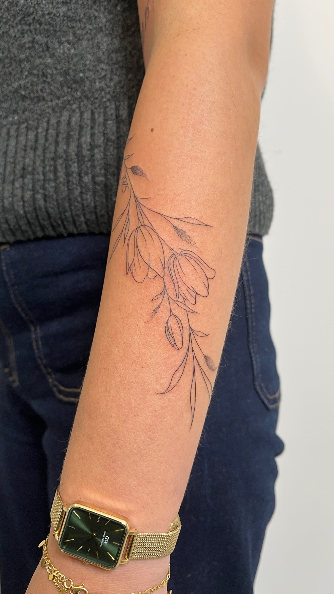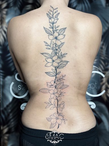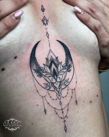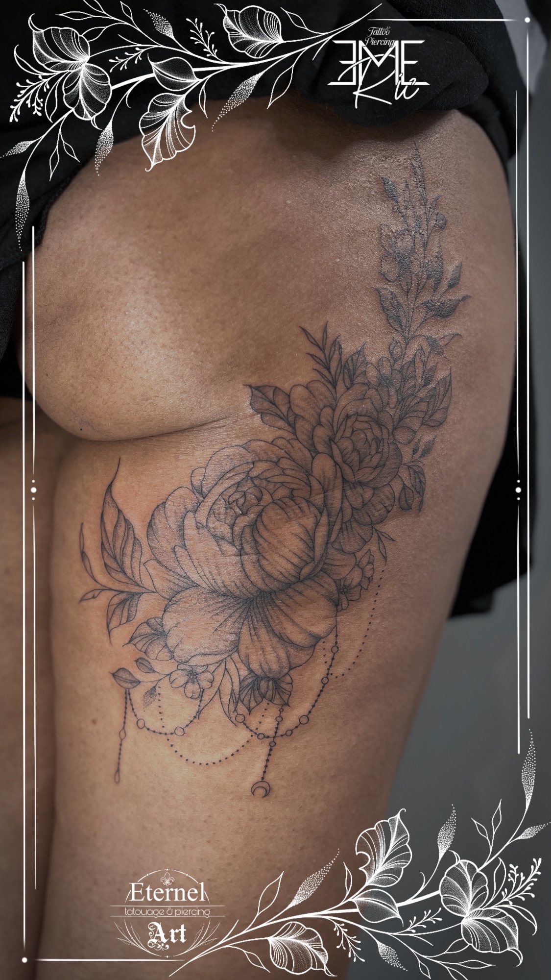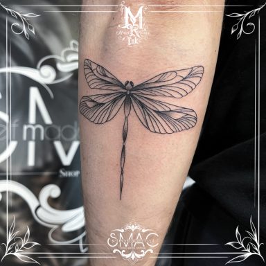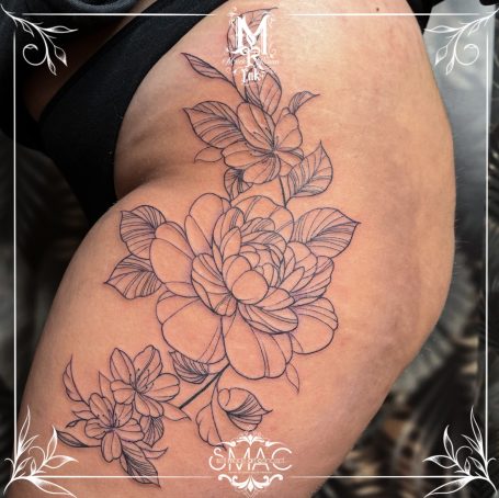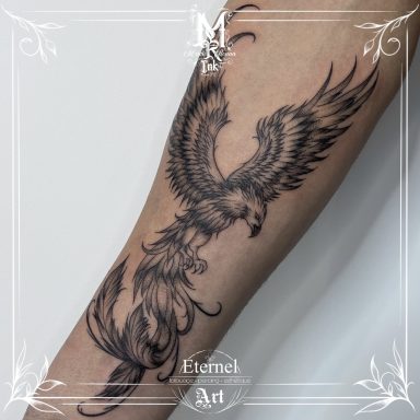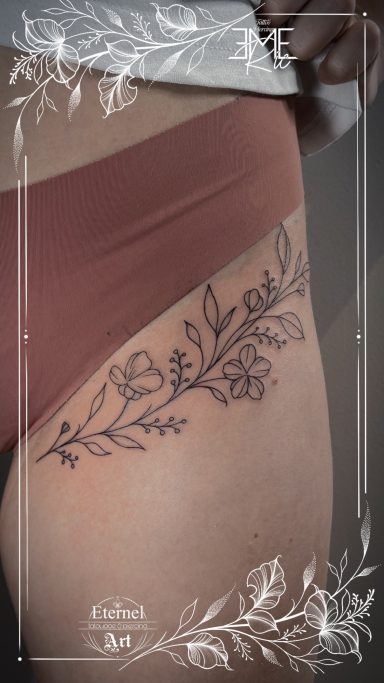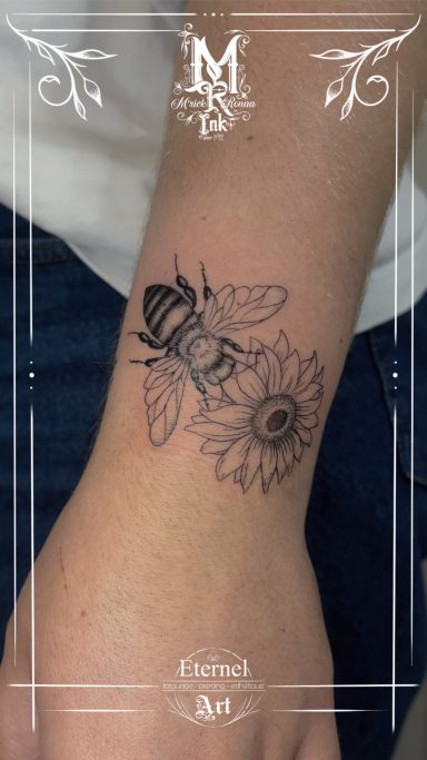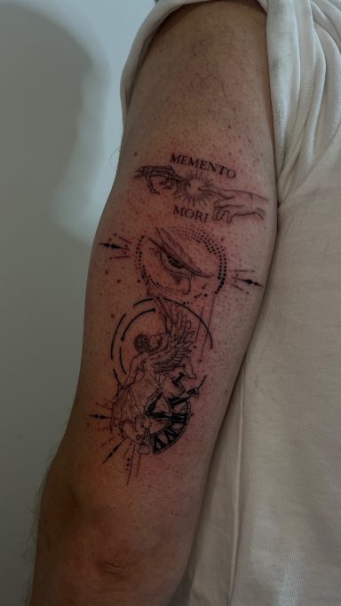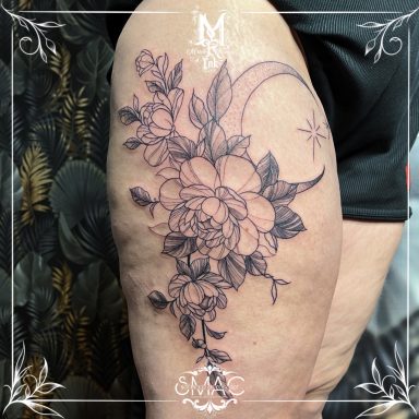 Les tatouages réalisés par Emeric ont pour points communs les lignes fines dit « fineline ». Il remporte la 2e place à la convention « INTERNATIONAL CHARTRES TATTOO SHOW 2025 » dans cette catégorie. La finesse, la précision et la délicatesse sont ses maîtres mots. Des ombrages claires et léger viennent sublimer les tattoos.