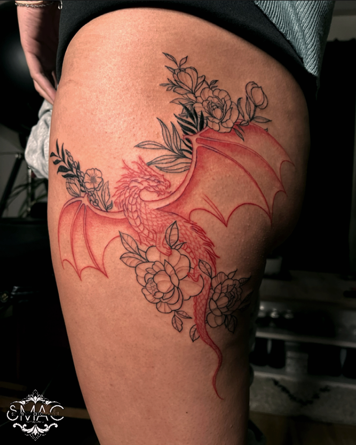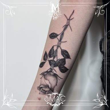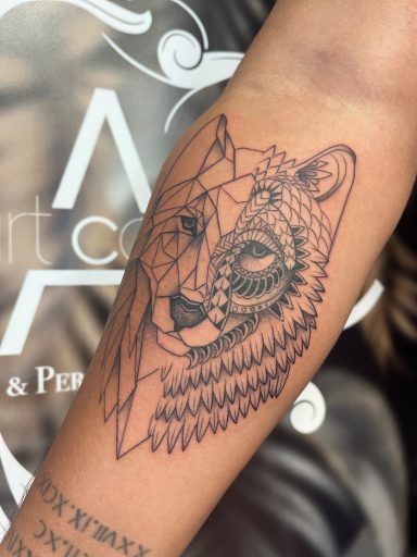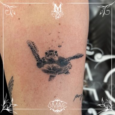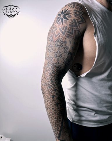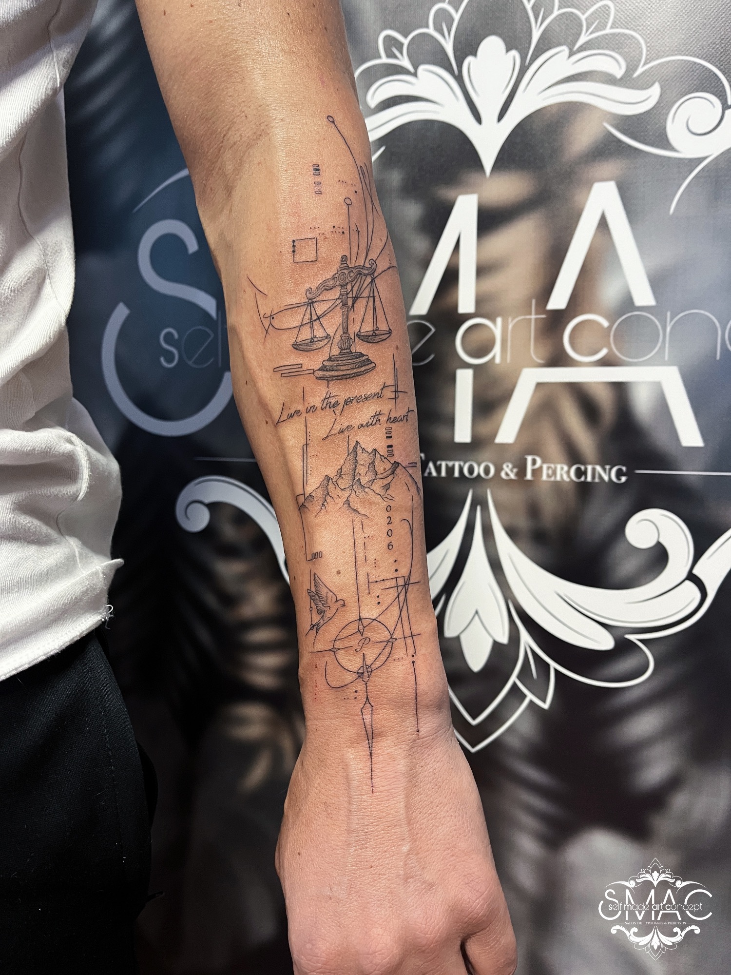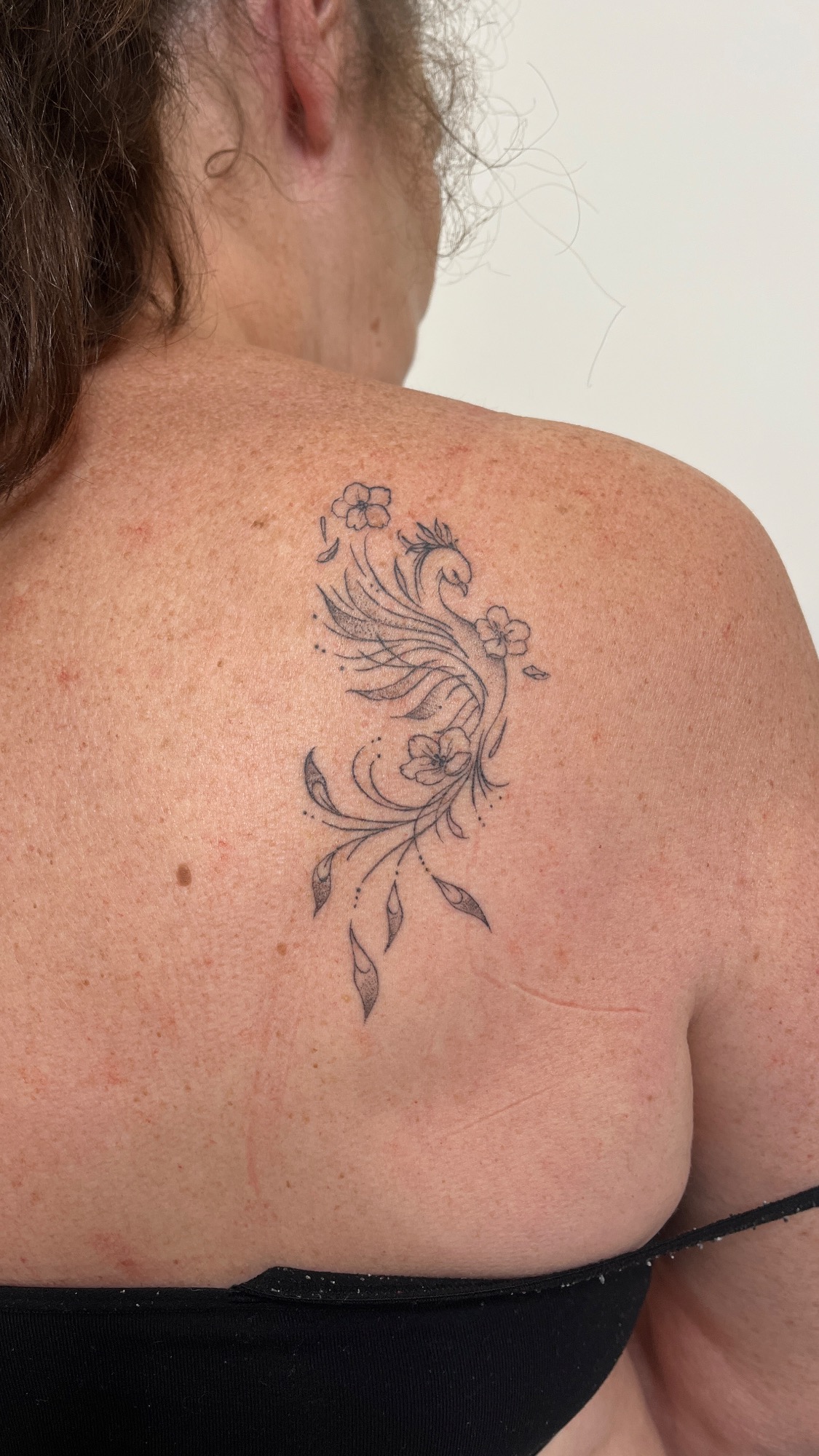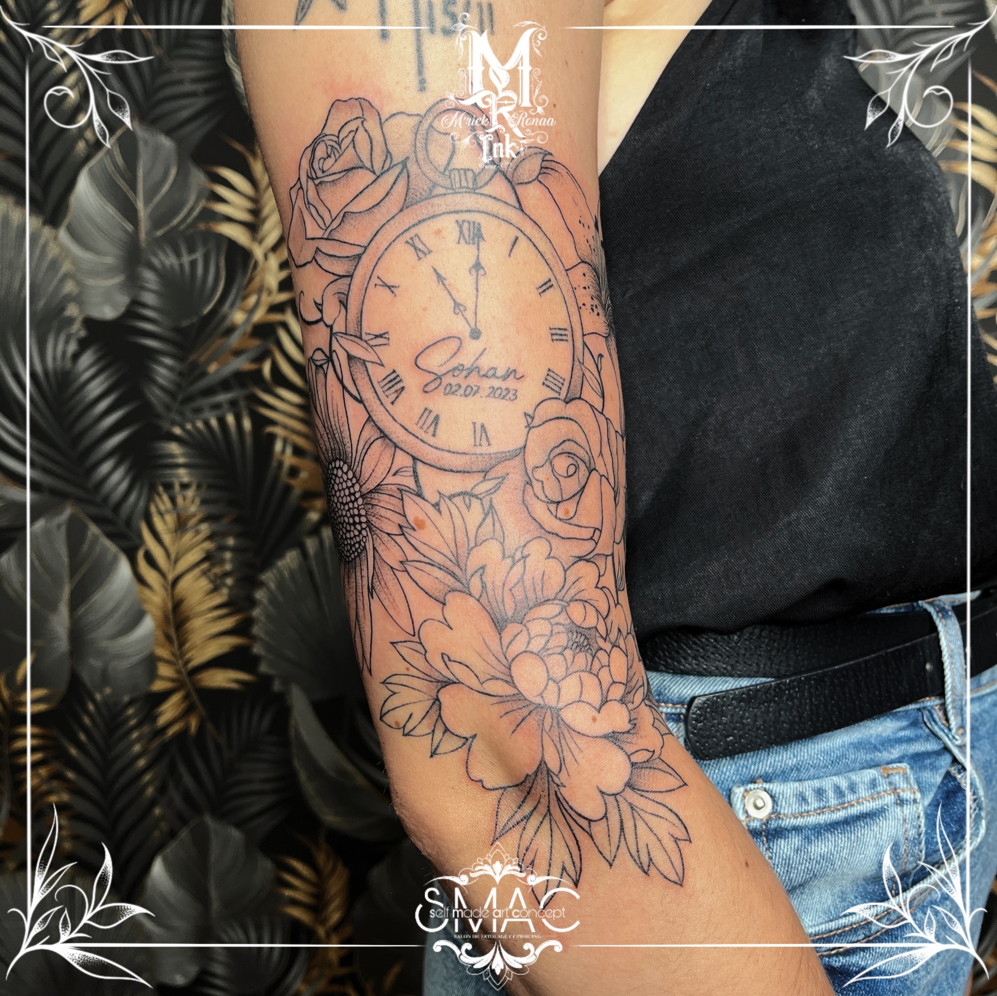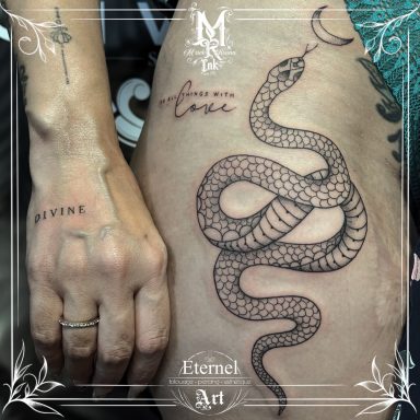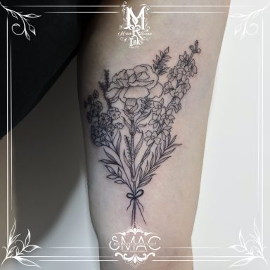 Les tatouages réalisés par Emeric ont pour points communs les lignes fines dit « fineline ». Il remporte la 2e place à la convention « INTERNATIONAL CHARTRES TATTOO SHOW 2025 » dans cette catégorie. La finesse, la précision et la délicatesse sont ses maîtres mots. Des ombrages claires et léger viennent sublimer les tattoos.