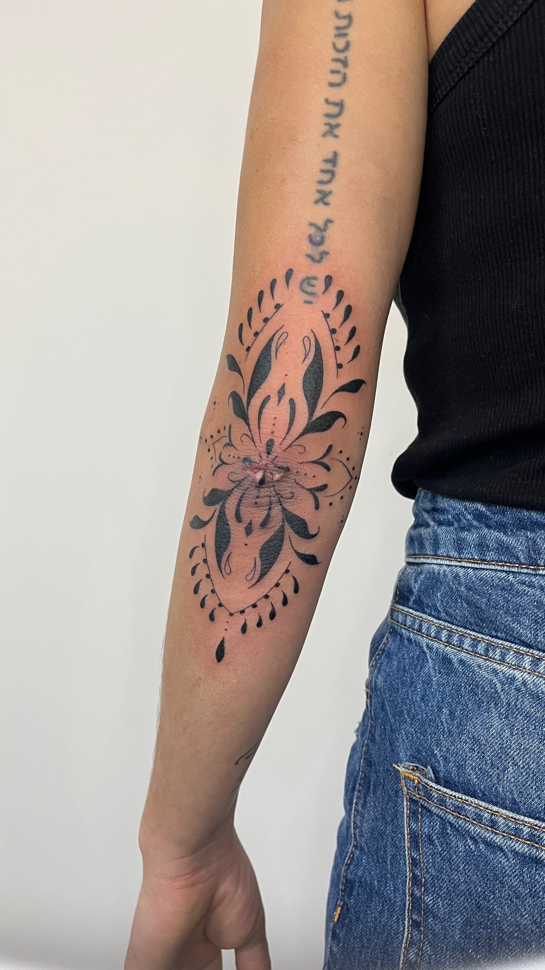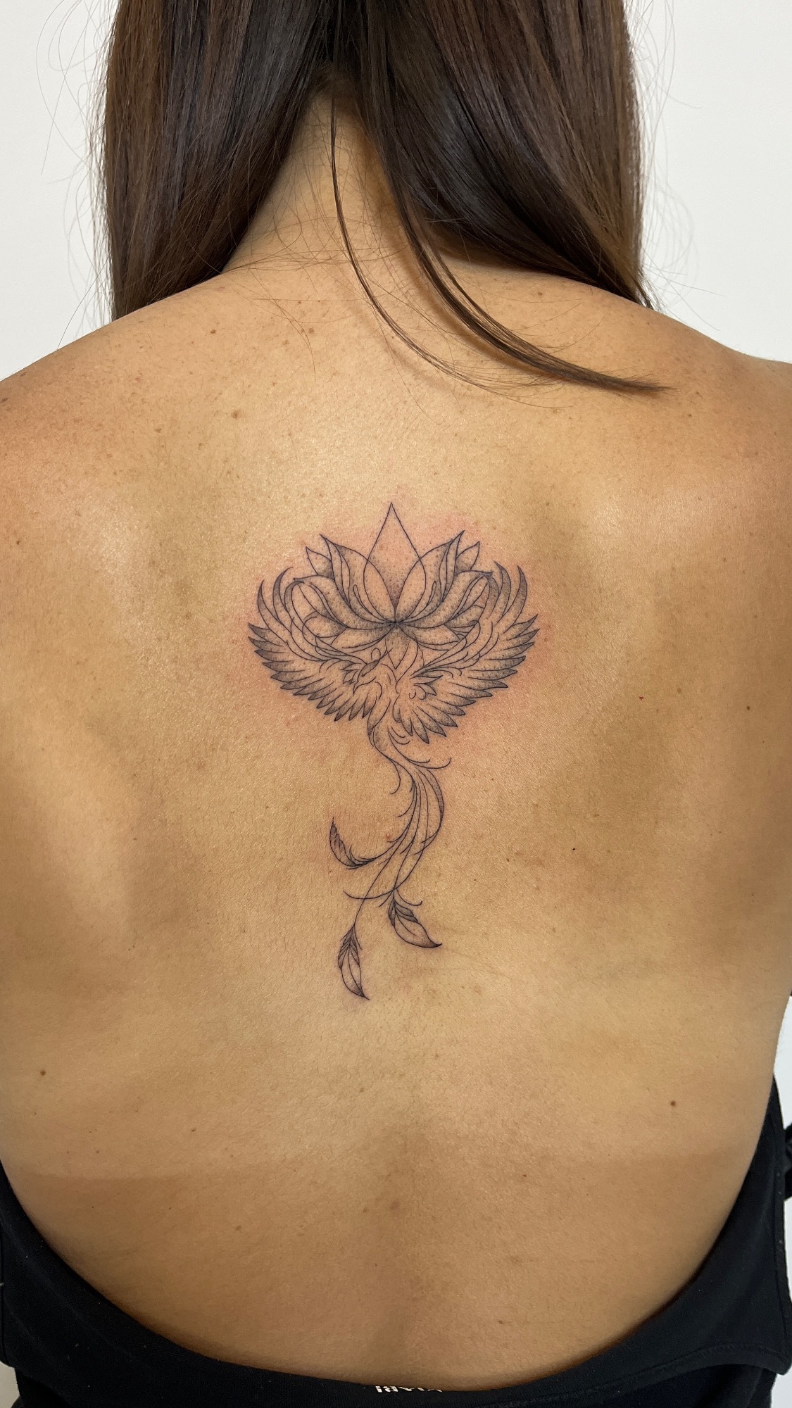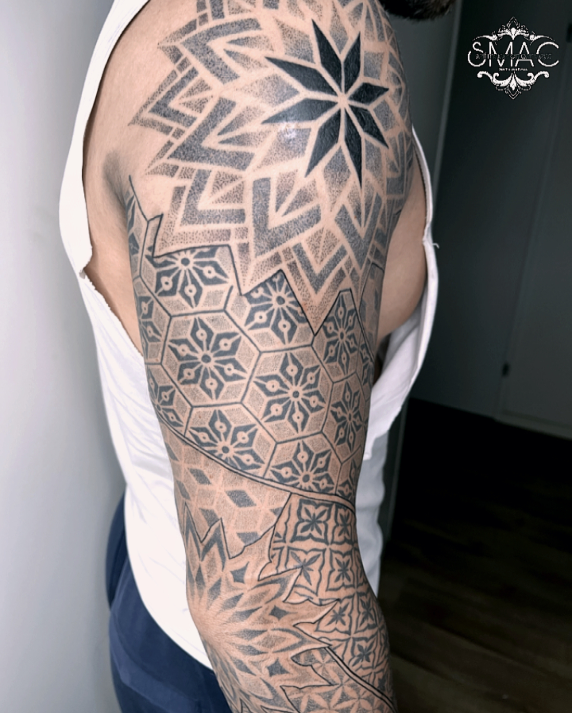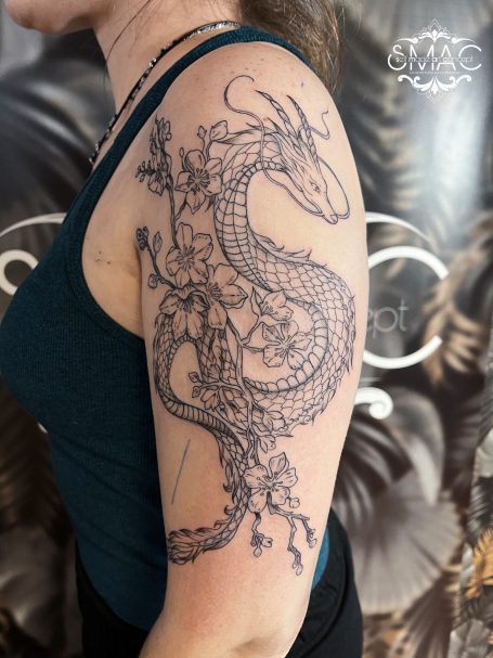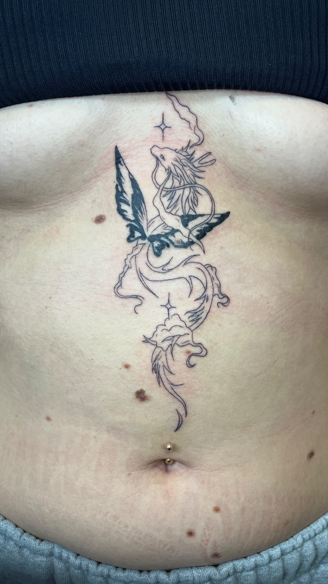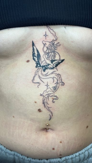 Les tatouages réalisés par Emeric ont pour points communs les lignes fines dit « fineline ». Il remporte la 2e place à la convention « INTERNATIONAL CHARTRES TATTOO SHOW 2025 » dans cette catégorie. La finesse, la précision et la délicatesse sont ses maîtres mots. Des ombrages claires et léger viennent sublimer les tattoos.