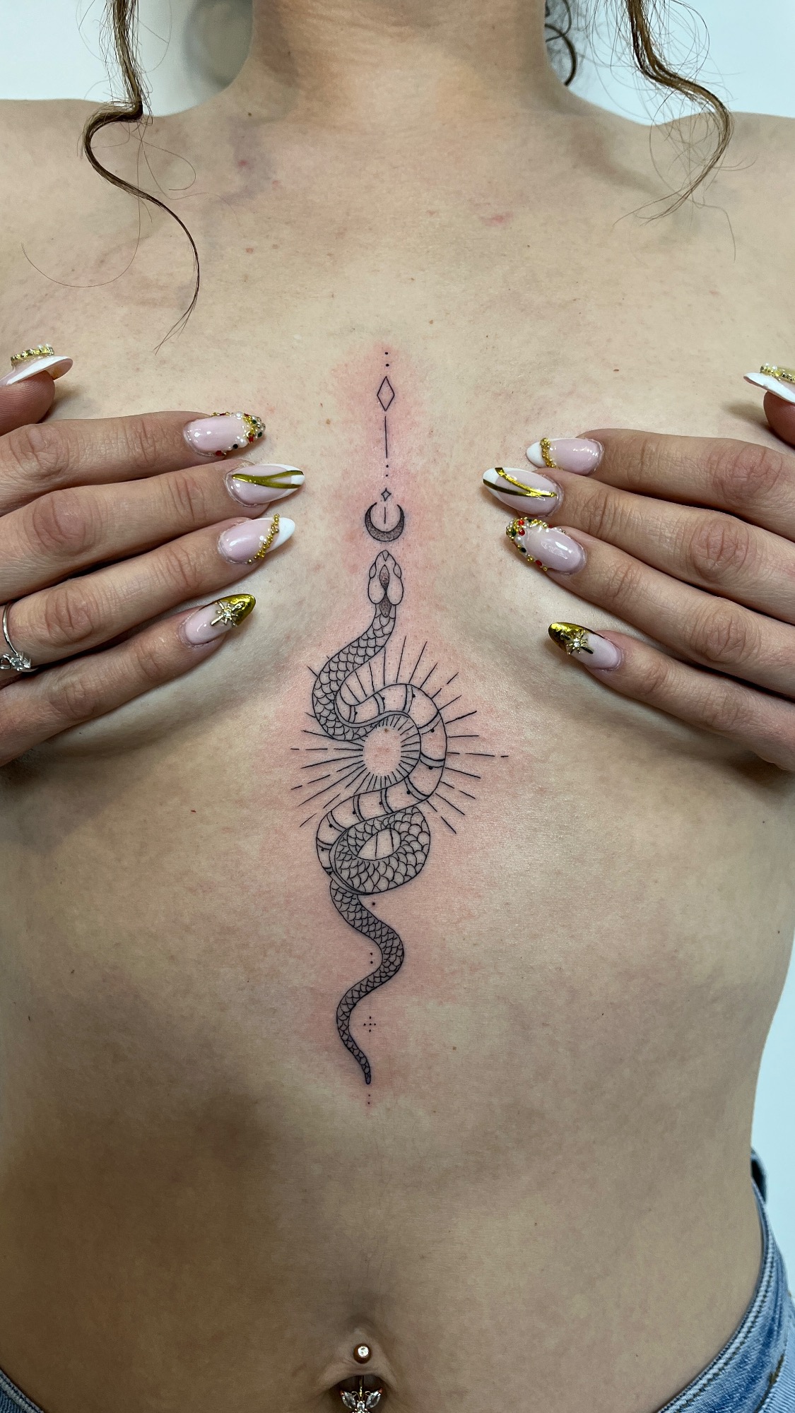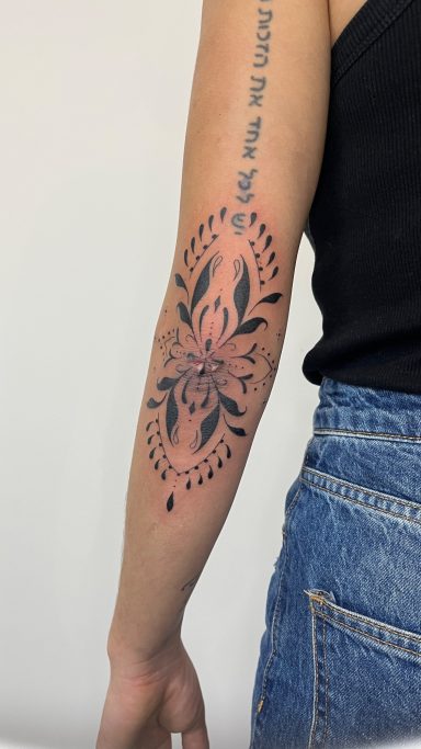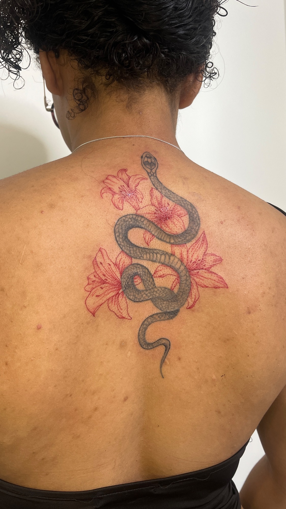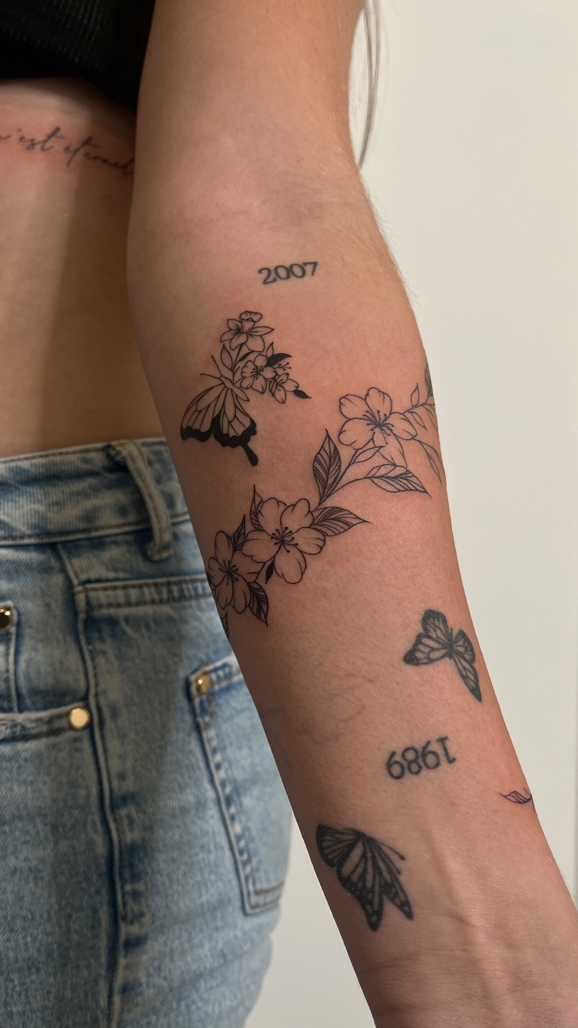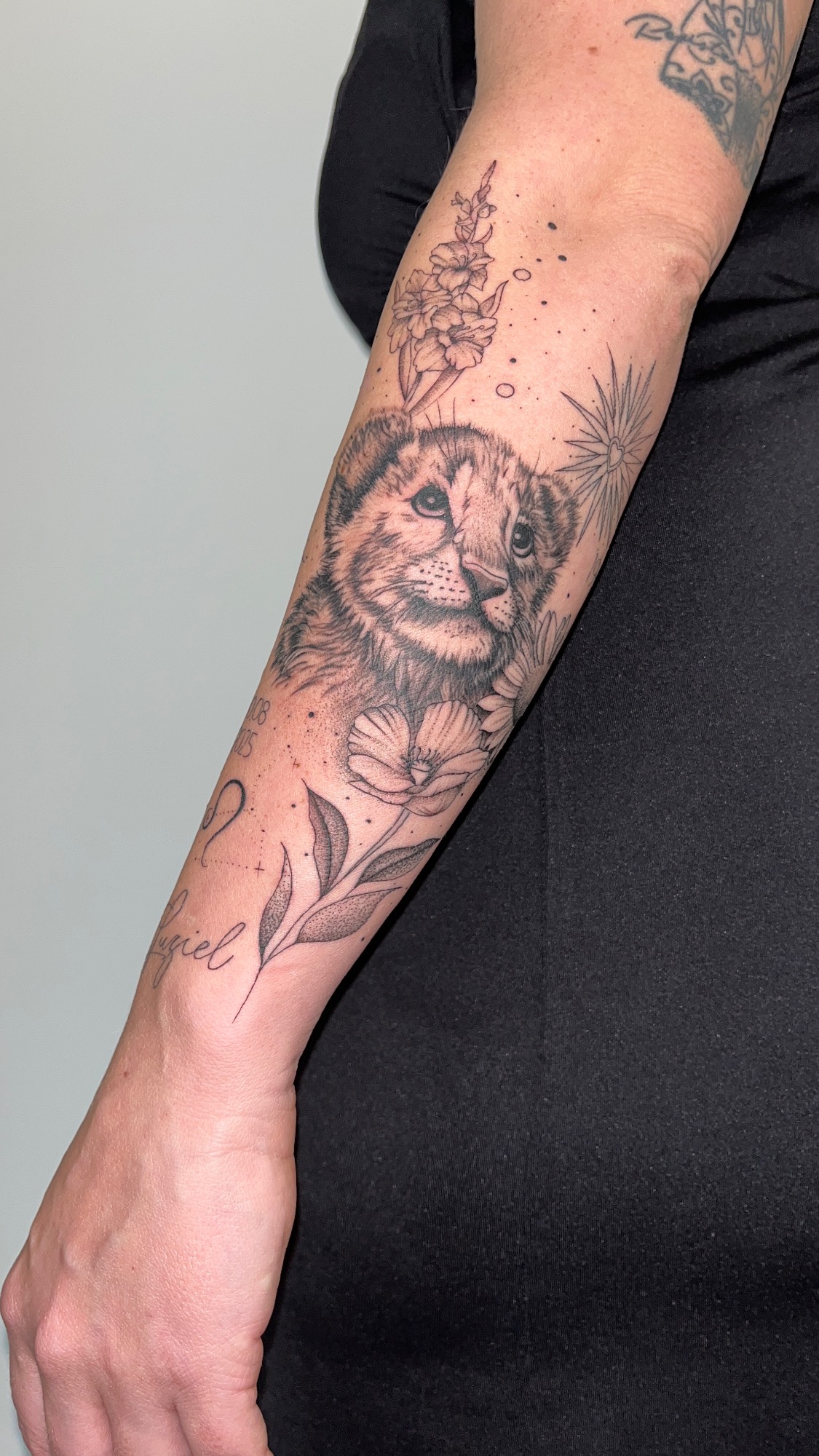 Les tatouages réalisés par Emeric ont pour points communs les lignes fines dit « fineline ». Il remporte la 2e place à la convention « INTERNATIONAL CHARTRES TATTOO SHOW 2025 » dans cette catégorie. La finesse, la précision et la délicatesse sont ses maîtres mots. Des ombrages claires et léger viennent sublimer les tattoos.