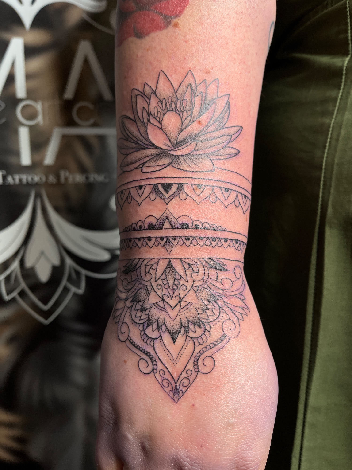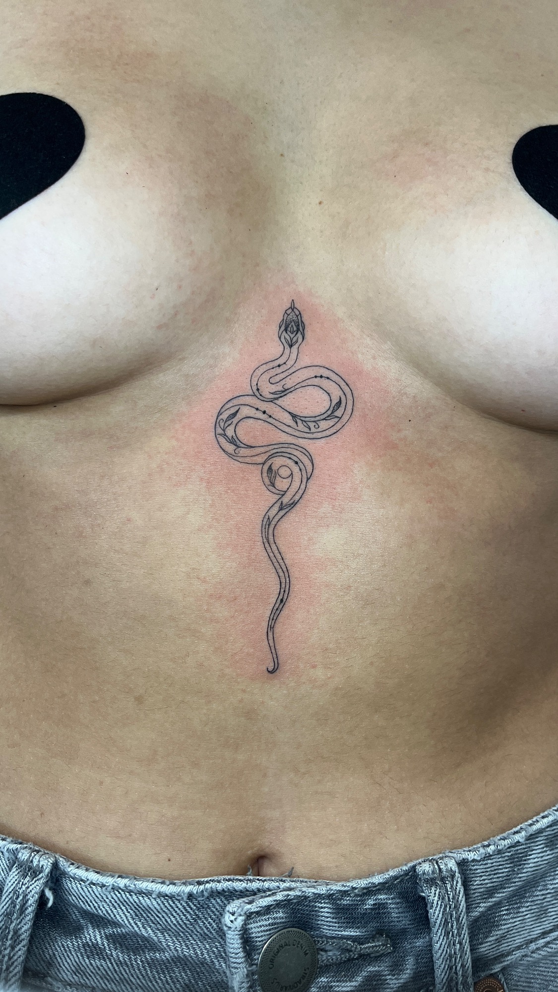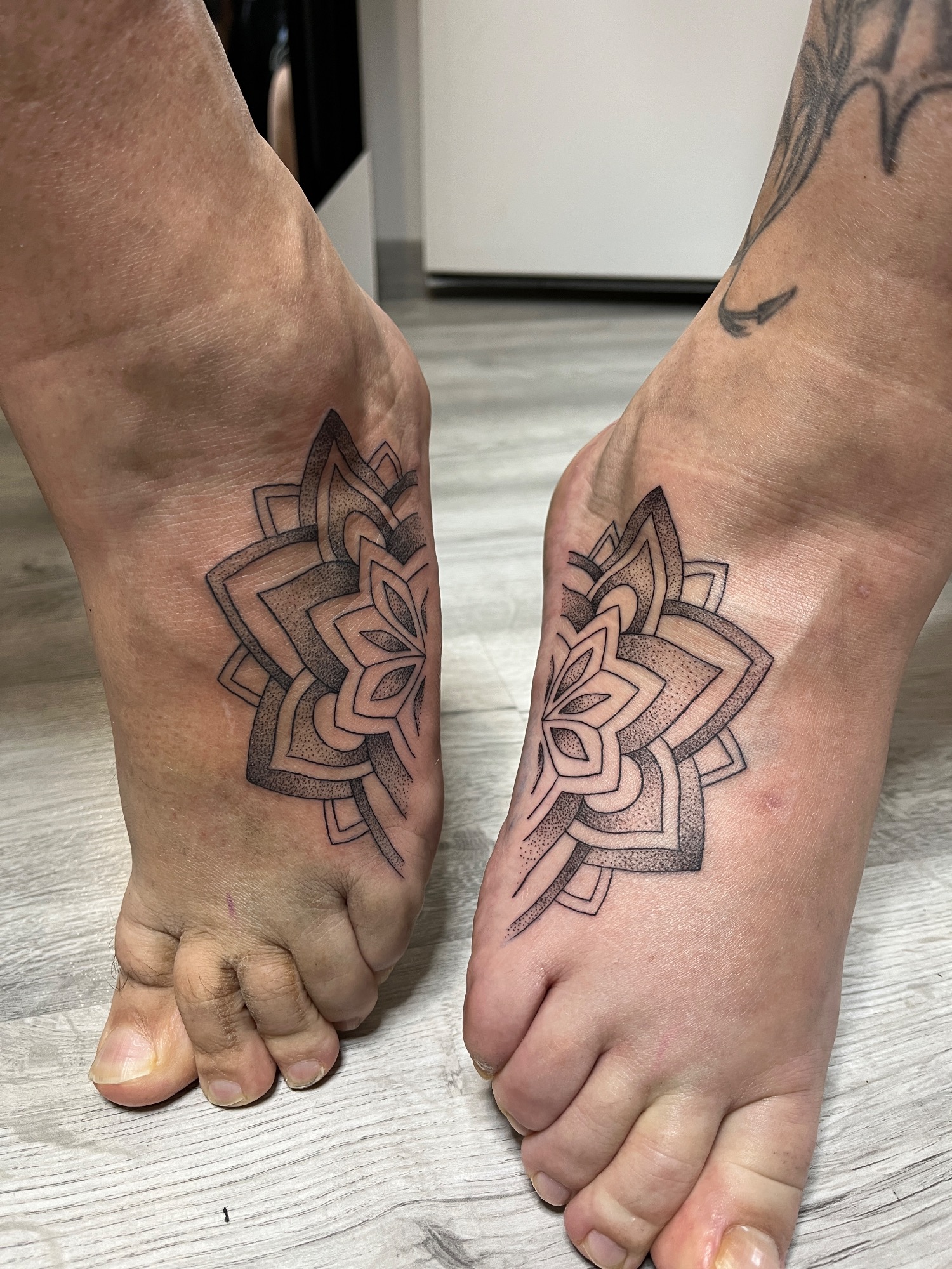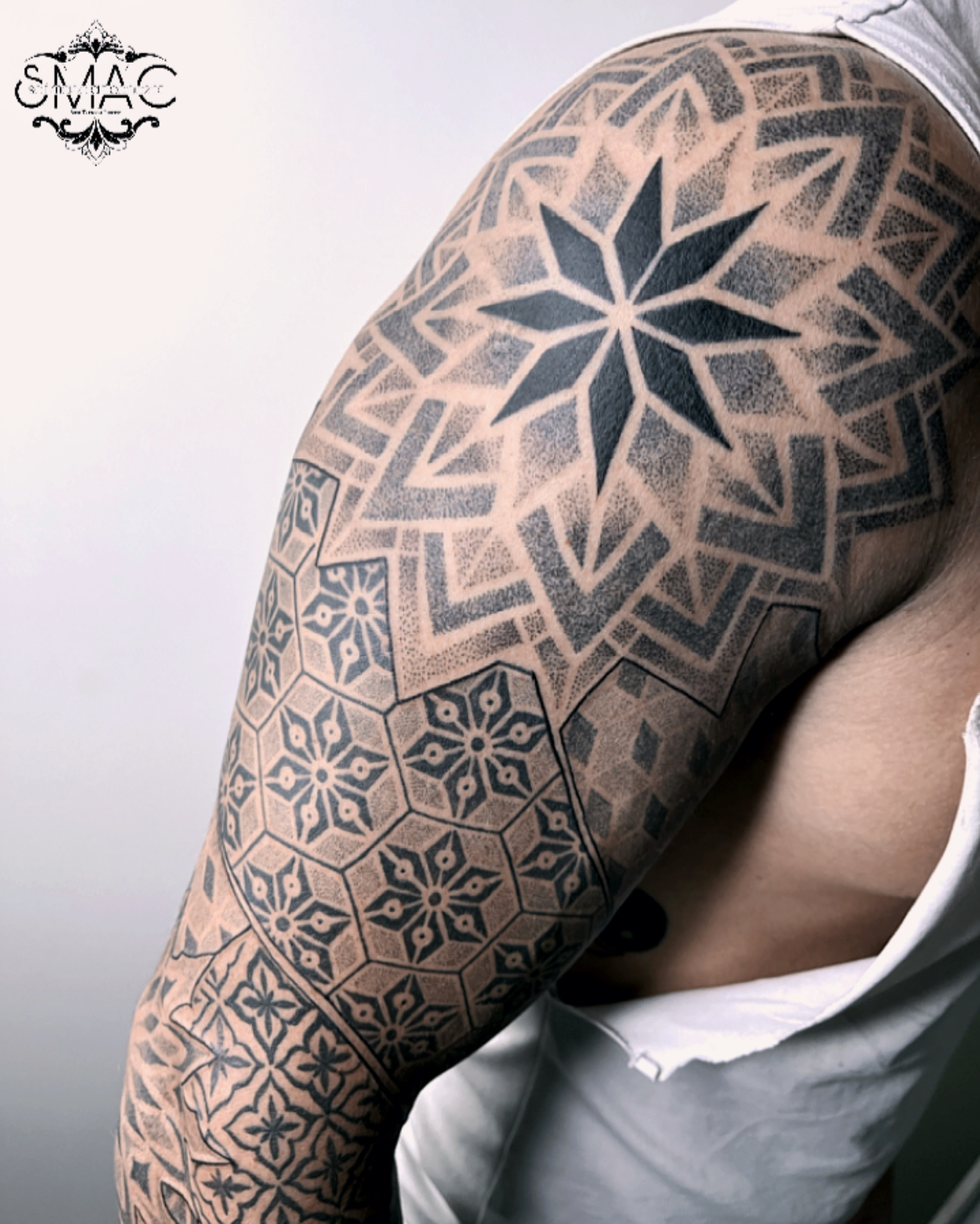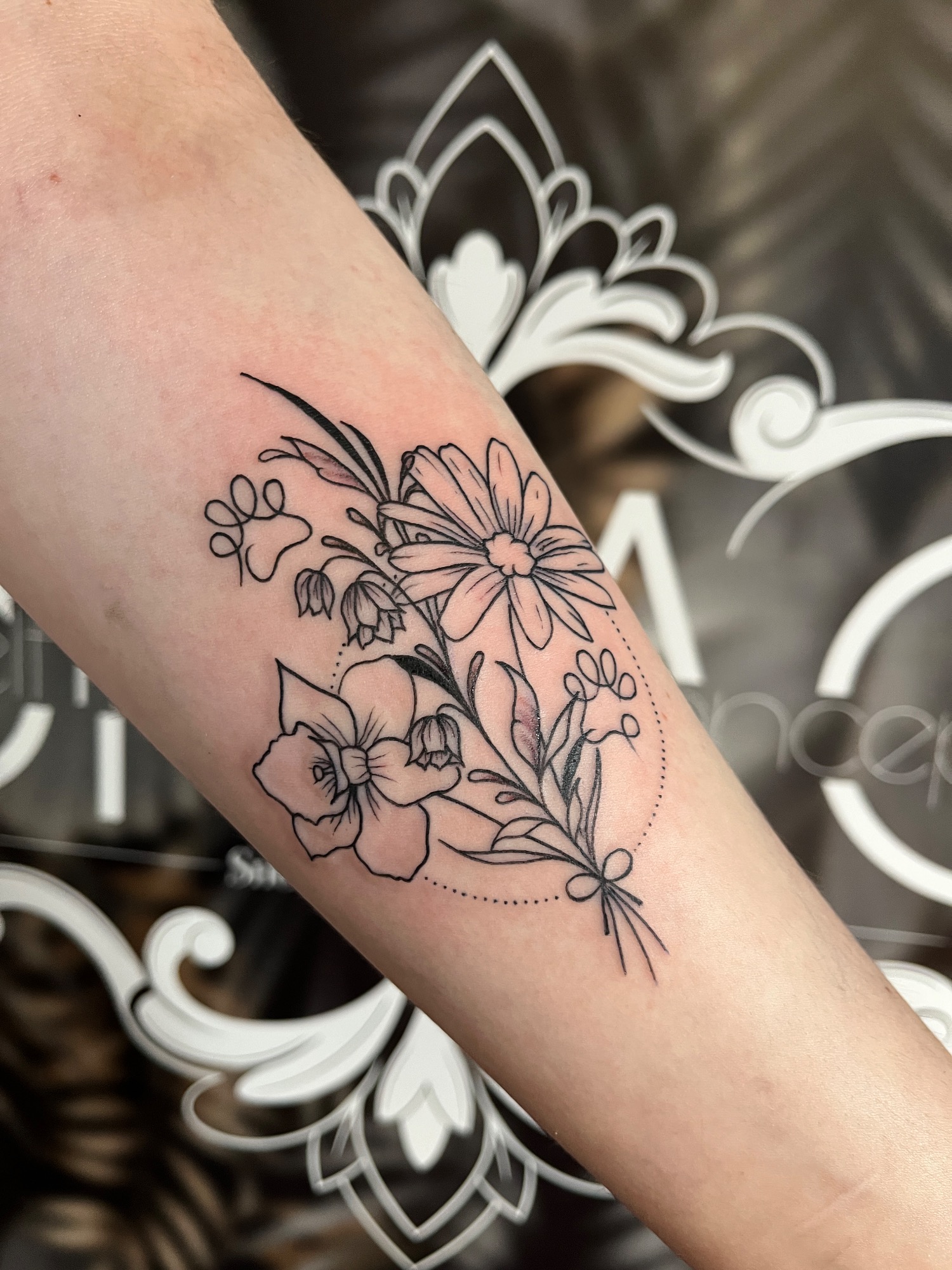 Les tatouages réalisés par Emeric ont pour points communs les lignes fines dit « fineline ». Il remporte la 2e place à la convention « INTERNATIONAL CHARTRES TATTOO SHOW 2025 » dans cette catégorie. La finesse, la précision et la délicatesse sont ses maîtres mots. Des ombrages claires et léger viennent sublimer les tattoos.